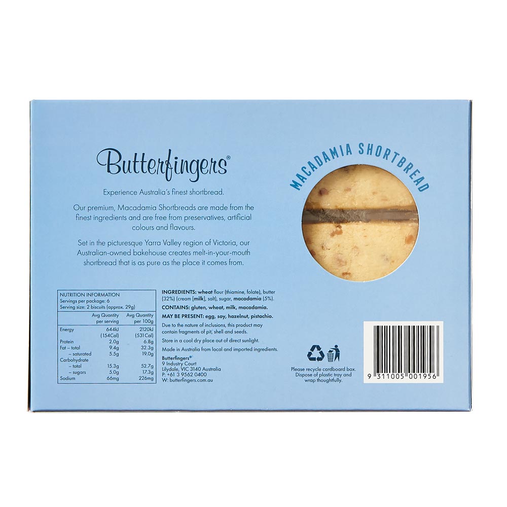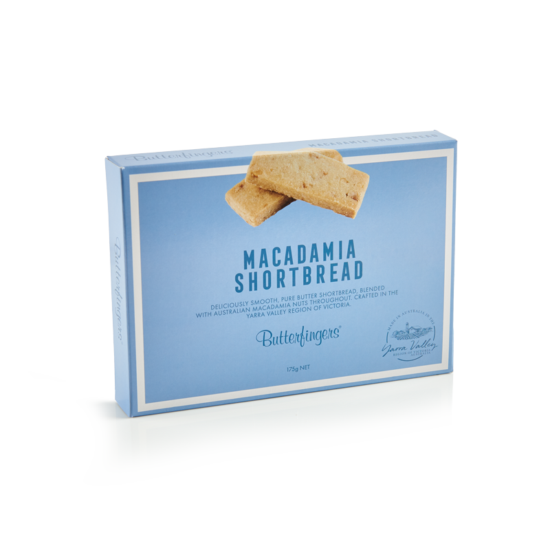 Deliciously smooth, pure butter shortbread, blended with Australian macadamia nuts throughout. Crafted in the Yarra Valley region of Victoria.
